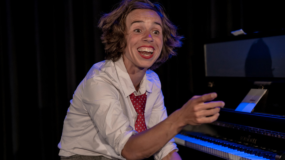 Die Berlinerin singt, philosolophiert und „verspielt“ sich gut und gern am Klavier.