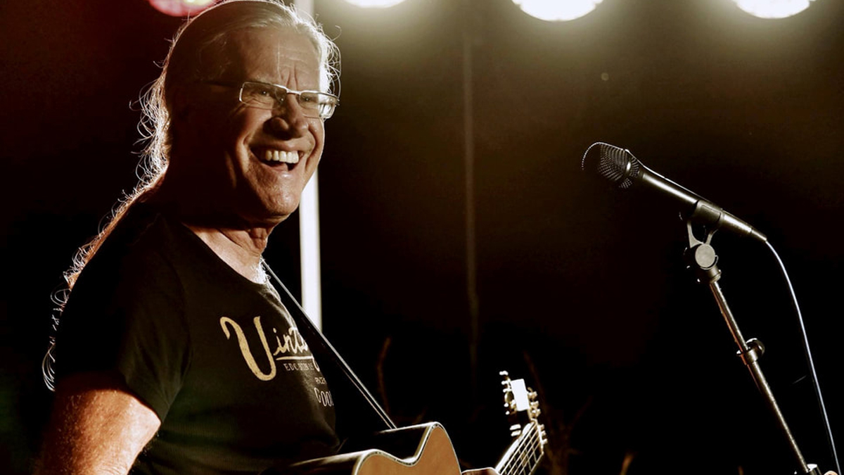 Hier spielt Toni ganz allein. Fast…Dafür bringt er eine ganze Batterie an elektrischen, akustischen und blechernen Gitarren auf die Bühne. Diese werden gezupft, geschlagen und «beslidet»